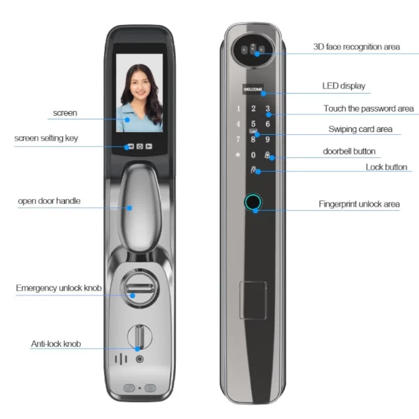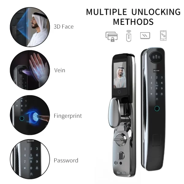 - Multiple unlocking options: fingerprint, passcode, RFID, and mobile app